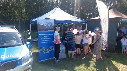Na stoisku policjantów odwiedzający mieli możliwość zapoznania się z radiowozem i policyjnym wyposażeniem, w tym sprzętem PZ - przeciwuderzeniowym, wykorzystywanym przez policjantów np. podczas zabezpieczania meczów piłki nożnej. Przygotowane materiały profilaktyczne dotyczyły negatywnego wpływu alkoholu i narkotyków na człowieka. Dla dzieci największą frajdą było wykonanie „odcisków palców”. Najmłodsi chętnie siadali za kierownicą radiowozu, aby zrobić sobie pamiątkowe zdjęcie. Policjanci przypomnieli również o podstawowych zasadach bezpieczeństwa podczas letniego wypoczynku, rozmawiali o bezpieczeństwie nad wodą oraz w ruchu drogowym.