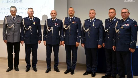 I Zastępca Komendanta Wojewódzkiego Policji zs w Radomiu wręczył awansowanym policjantom akty mianowania na wyższe stopnie policyjne. Wśród odznaczonych znaleźli się nadkom. Paweł Zimolzak, kom. Mariusz Nowociński, kom. Adam Mock oraz asp. Kamil Nowicki.