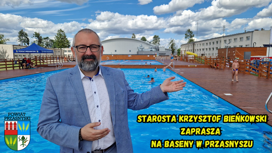 Starosta Krzysztof Bieńkowski serdecznie zaprasza do korzystania z nowoczesnych obiektów rekreacyjnych w Przasnyszu, które z pewnością umilą Państwu lato oraz pozwolą na chwile wytchnienia i radości podczas aktywnego wypoczynku na świeżym powietrzu!