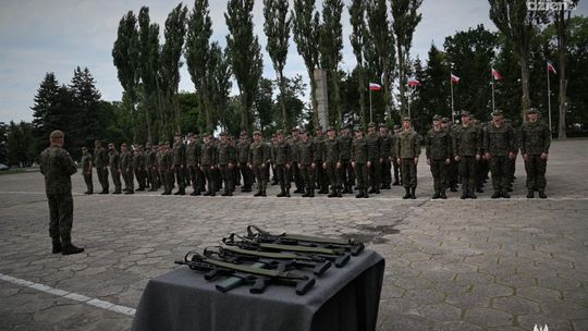 Zanim ochotnicy rozpoczęli ćwiczenia praktyczne w ramach szkolenia podstawowego, musieli dopełnić niezbędnych formalności, np. wypełnić dokumenty, pobrać mundury, odbyć szkolenie z BHP i test sprawności fizycznej. Wczoraj ochotnicy otrzymali karabinki MSBS GROT - swoją pierwszą broń, która będzie im towarzyszyć przez cały okres szkolenia.