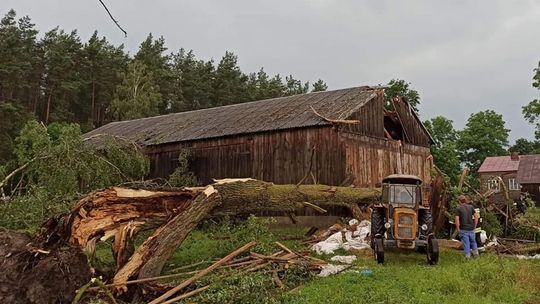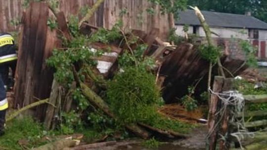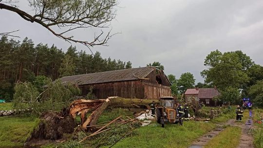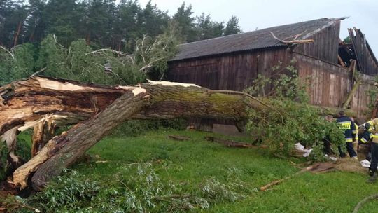 Drzewo przewróciło się na część drewnianego budynku gospodarczego, niszcząc go całkowicie, a przy tym przygniatając 7 sztuk bydła. Wszystko działo się w sobotnie popołudnie we wsi Liwki (gmina Chorzele).