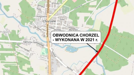 W ciągu drogi wojewódzkiej 614 powstanie rondo, które połączy tzw. obwodnicę Chorzel z siecią drogową województwa mazowieckiego (przecięcie z ul. Zarębską w Chorzelach).