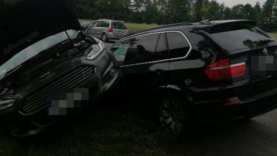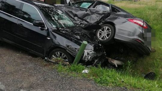 Cztery zastępy straży pożarnej interweniowały w piątek po godzinie 13 w Kicinie na trasie Ciechanów-Płońsk, gdzie czołowo zderzyły się auta osobowe BWM X5 i Ford Mondeo.