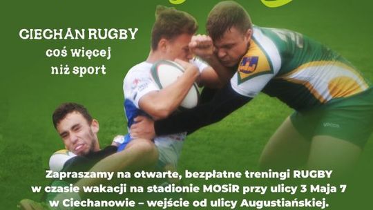 Bezpłatne treningi rugby będą się odbywać w dwóch przedziałach wiekowych (16-19 lat i 19+) w czasie wakacji na stadionie MOSiR w Ciechanowie. Najbliższe zajęcia zaplanowano w piątek (10 lipca) po godzinie 20. Szczegółowych informacji udziela trener Łukasz Gąsiorowski pod numerem telefonu 669 950 439.