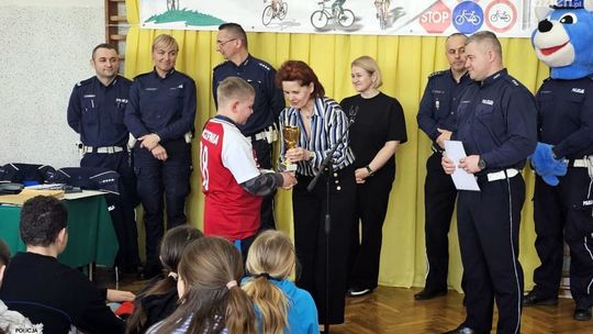 Zwycięskie drużyny oraz najlepsi zawodnicy, odebrali nagrody z rąk pani Jolanty Bem, Dyrektor Powiatowego Ośrodka Doskonalenia Nauczycieli w Mławie oraz Naczelnika Wydziału Ruchu Drogowego Komendy Powiatowej Policji w Mławie kom. Mariusza Nowocińskiego.