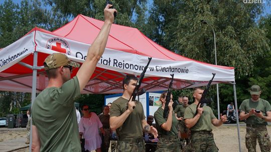 - Zawody Mini Formoza Challenge mają przede wszystkim służyć poprawieniu kondycji fizycznej i spotkaniu kadetów służb mundurowych. To także rywalizacja. Wszyscy startują w takim umundurowaniu w jakim pracują. Mają też utrudnienia typu bieg z bronią (gumowa atrapa karabinku AK-47 - red.), a na końcu na takim naprawdę dużym zmęczeniu trzeba jeszcze oddać strzały do tarczy i potem dobiec do mety. Piach na plaży też nie jest sprzymierzeńcem. Ten krótki bo 150 m odcinek daje naprawdę mocny wycisk - mówił sierż Adam Pytel, instruktor mundurowy w szkołach CN- B Feniks.