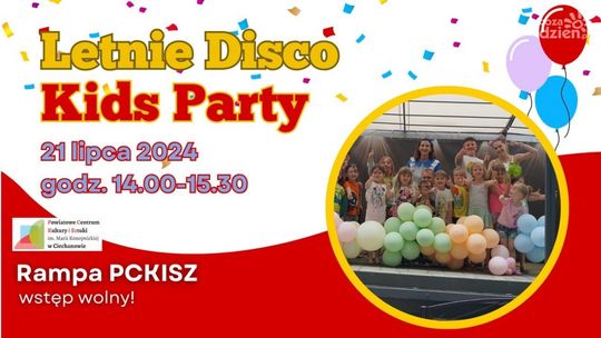 - Letnie Disco - Kids Party odbędzie się w godz. 14:00 - 15:30. PCKiSz zaprasza wszystkie dzieci i całe rodziny do wspólnej zabawy na świeżym powietrzu przy znanych letnich hitach.