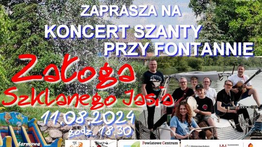 • Następnie o godz. 18:30, również przy fontannie odbędzie się koncert szanty zespołu Załoga Szklanego Jasia.