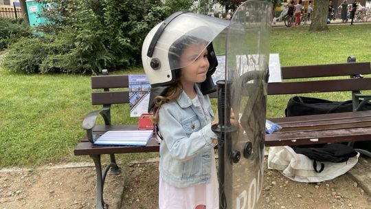Uczestnicy letniego wypoczynku mieli okazję nie tylko nauczyć się zasad bezpieczeństwa, ale także wziąć udział w zabawach edukacyjnych. Jednym z głównych punktów programu była możliwość przymierzenia specjalistycznego sprzętu policyjnego, co wzbudziło ogromne zainteresowanie najmłodszych.