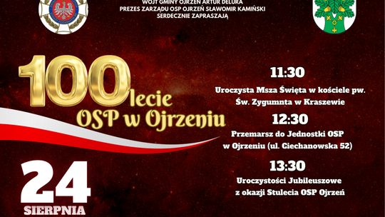 24 sierpnia Ochotnicza Straż Pożarna w Ojrzeniu obchodzi swoje 100-lecie. Wydarzenie to jest okazją do uhonorowania strażaków, którzy od wieku stoją na straży bezpieczeństwa lokalnej społeczności.