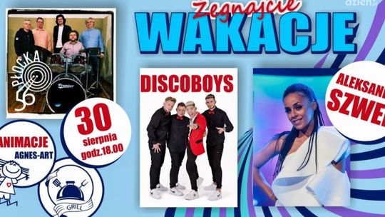 • Żegnajcie Wakacje - na terenie przy Miejskim Centrum Kultury, o godz. 18:00 odbędzie się koncert na pożegnanie wakacji. Na scenie wystąpią: Aleksandra Szwed – piosenkarka, aktorka telewizyjna i teatralna, reżyserka i trenerka, zespół Discoboys – dynamiczna formacja muzyczna, która rozgrzewa parkiety od lat swoimi energetycznymi występami oraz lokalna grupa „Płocka 56” którą tworzą połączeni wspólną pasją do muzyki nauczyciele Liceum Ogólnokształcącego im. H. Sienkiewicza w Płońsku. Nie zabraknie też atrakcji dla dzieci, które przygotuje Agnes-Art.