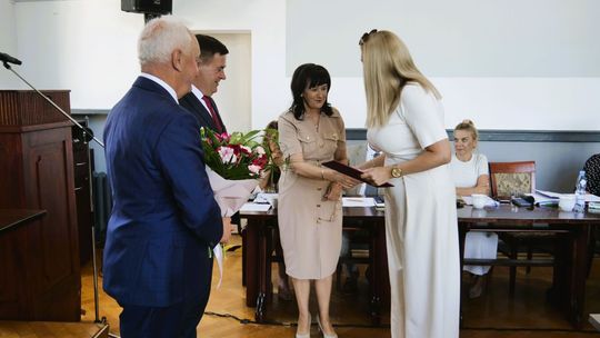 Podczas sesji rady powiatu mławskiego Starosta Witold Okumski oraz Przewodniczący Rady Powiatu Jan Warecki wręczyli Marii Magdalenie Kozakiewicz akt nominacji na stanowisko dyrektora Specjalnego Ośrodka Szkolno-Wychowawczego im. Janusza Korczaka w Mławie.
