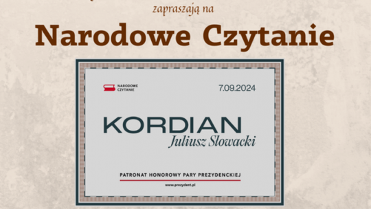 • Burmistrz Przasnysza oraz Dyrektor Miejskiej Biblioteki Publicznej w Przasnyszu zapraszają o godzinie 16:00 na Narodowe Czytanie "Kordiana" Juliusza Słowackiego.