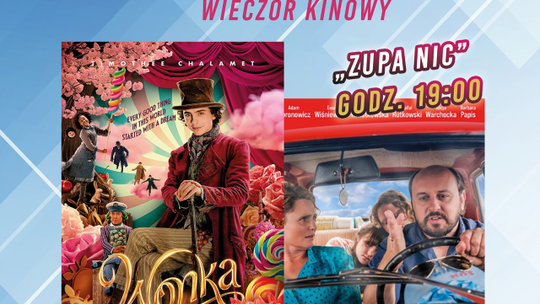 W piątek 11 października MCKSiR zaprasza na dwa seanse filmowe: „Wonka” o godz. 17:00 i komedię „Zupa nic” o godz. 19:00. Przy zakupie dwóch biletów lub pamiątkowego magnesu popcorn gratis.