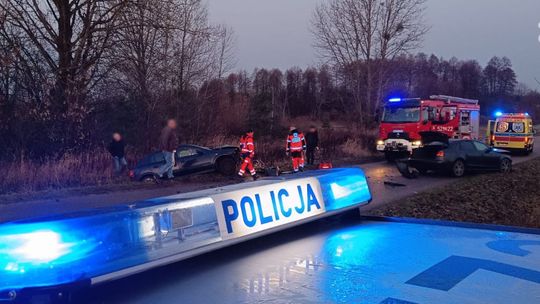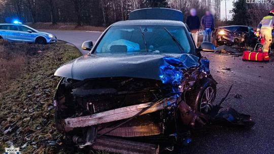 Wypadek miał miejsce dziś rano (25 listopada) przed godziną 7:00. Na oblodzonym łuku drogi relacji Wiśniewo-Wiśniewko 24-letni kierowca audi, mieszkaniec powiatu mławskiego, stracił panowanie nad pojazdem. Jego samochód wpadł na przeciwległy pas ruchu i zderzył się czołowo z oplem.