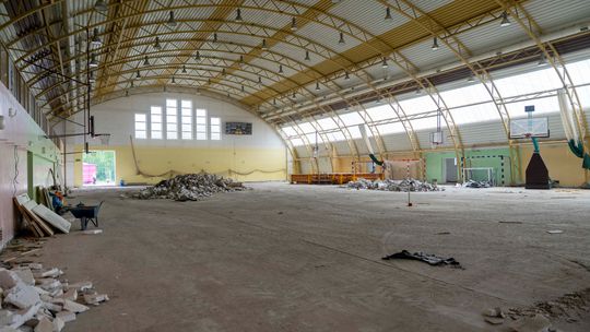 Obecnie firma WŁOD-BUD-DACHY 2 z Gostomina prowadzi roboty rozbiórkowe. Usunięto już warstwę podłogi w hali sportowej i skuto posadzki w piwnicy części dydaktycznej.