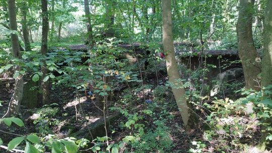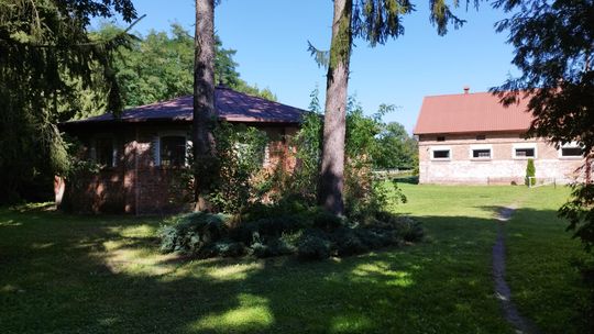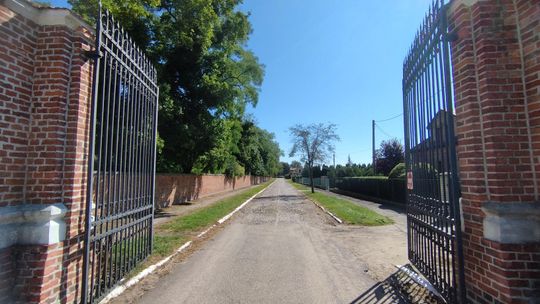 Opuszczamy kościół i idziemy w stronę parku. Tam, gdzie dziś rozciąga się pusta polana, naznaczona „posępnym gruzowiskiem”, stało niegdyś serce dominium.