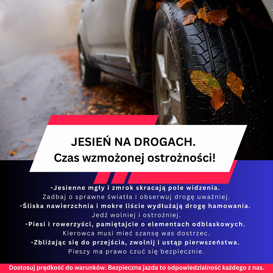 Bezpieczeństwo na drodze to wspólna odpowiedzialność. Tylko przestrzegając zasad ruchu drogowego i dostosowując zachowanie do warunków atmosferycznych, możemy realnie wpłynąć na zmniejszenie liczby wypadków i poprawę komfortu wszystkich uczestników ruchu. Jesień wymaga rozwagi – niech będzie to czas świadomego i bezpiecznego poruszania się po drogach.