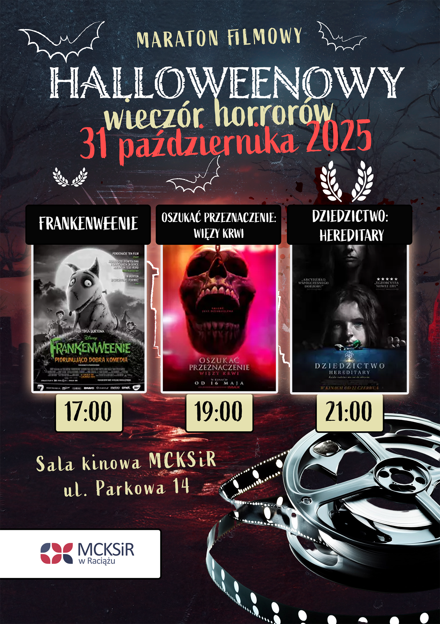 Maraton odbędzie się w piątek, 31 października 2025 roku, w sali kinowej MCKSiR przy ul. Parkowej 14 w Raciążu.