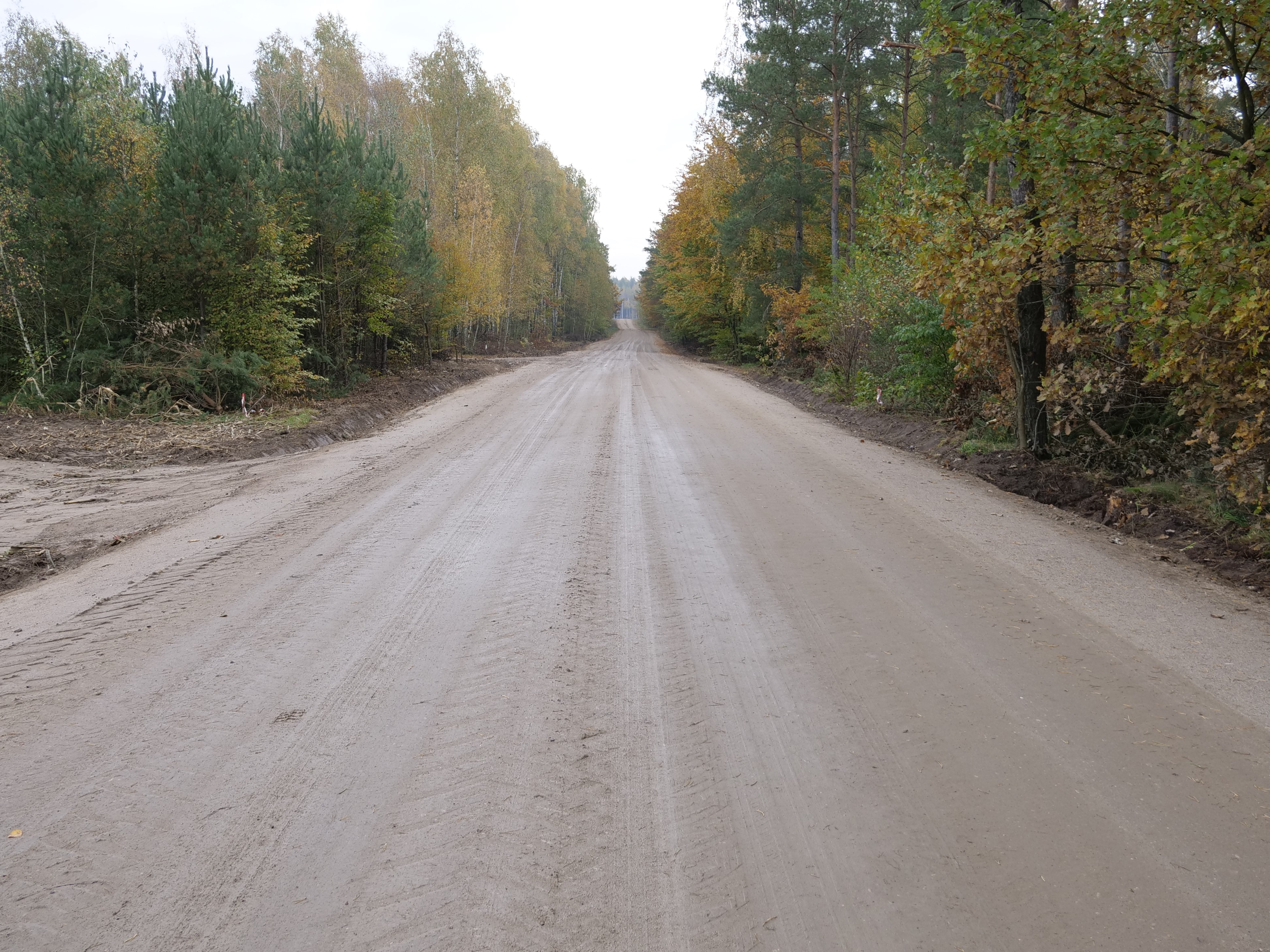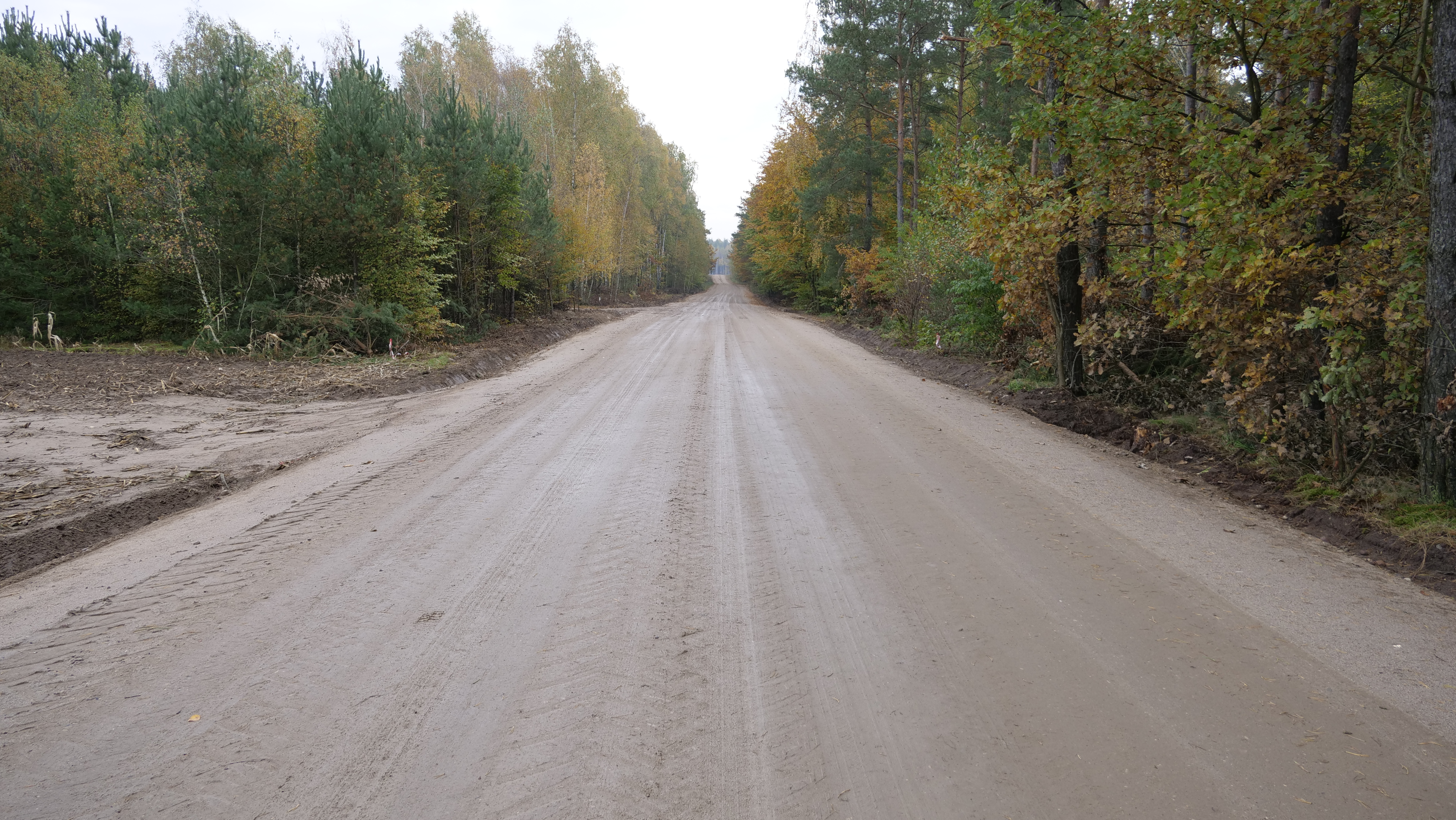 W ramach zadania wykonawca najpierw musiał precyzyjnie odtworzyć trasę drogi i wyznaczyć punkty wysokościowe. Konieczne było także wykonanie nowych nasypów oraz przygotowanie tzw. koryta (na głębokość 20 cm) pod przyszłą konstrukcję jezdni.