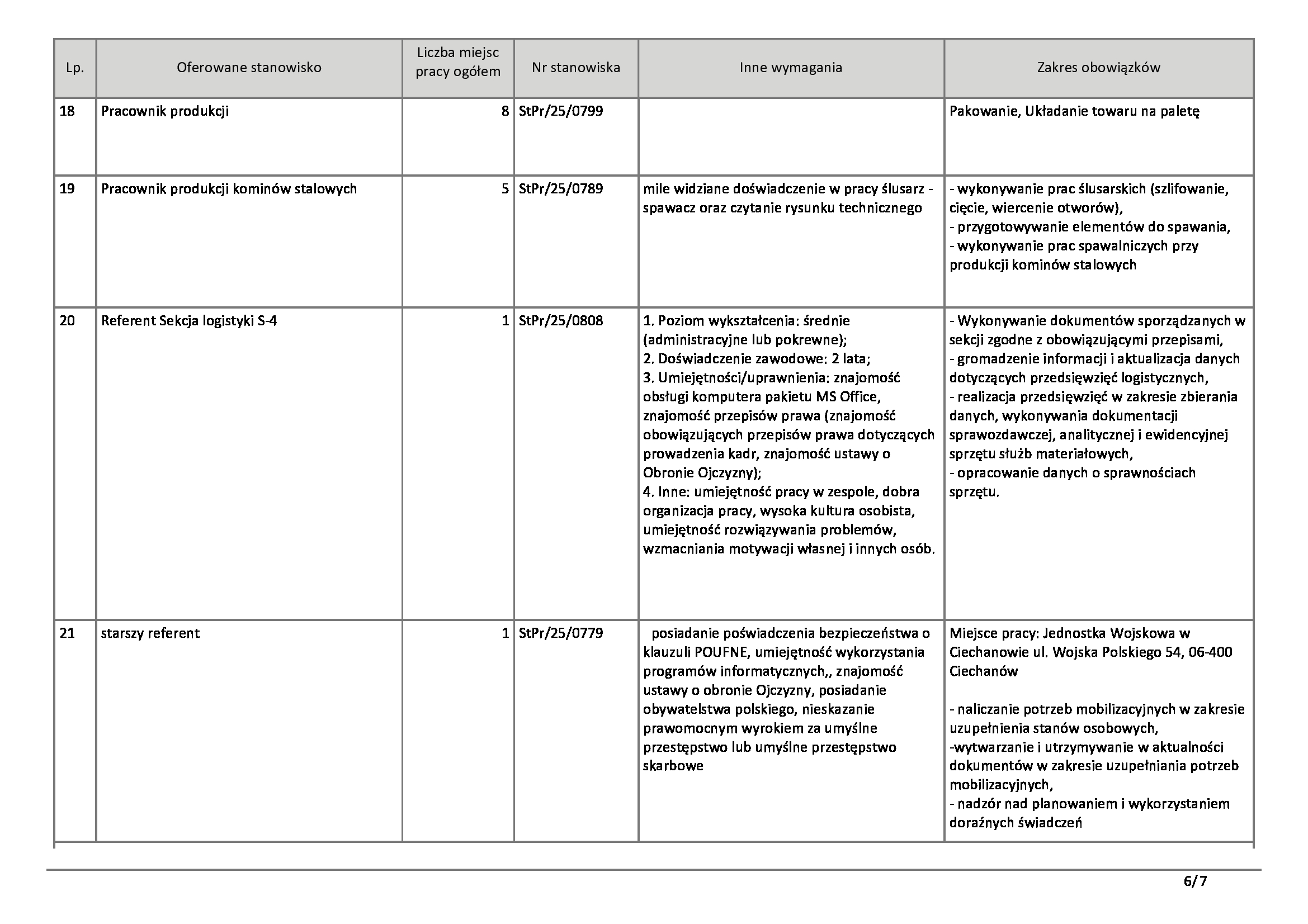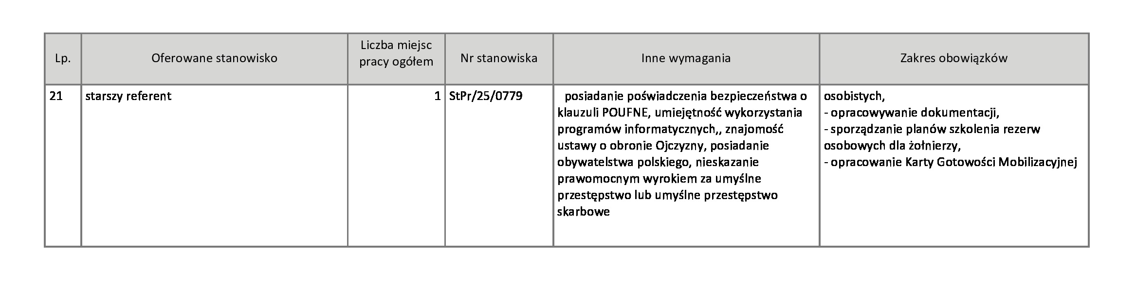 Z kolei Jednostka Wojskowa w Ciechanowie przy ul. Wojska Polskiego poszukuje starszego referenta. W tym przypadku kluczowe jest posiadanie poświadczenia bezpieczeństwa o klauzuli POUFNE oraz niekaralność za przestępstwa umyślne.