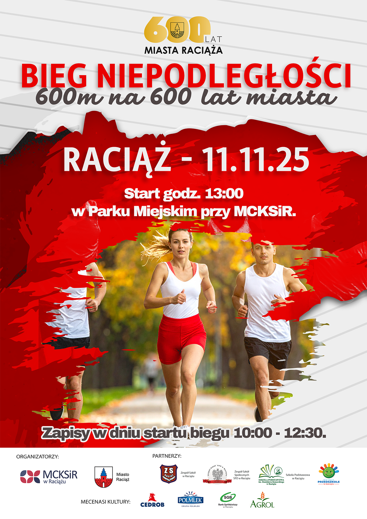 Bieg startuje 11 listopada o godzinie 13:00 w Parku Miejskim przy MCKiS-R.