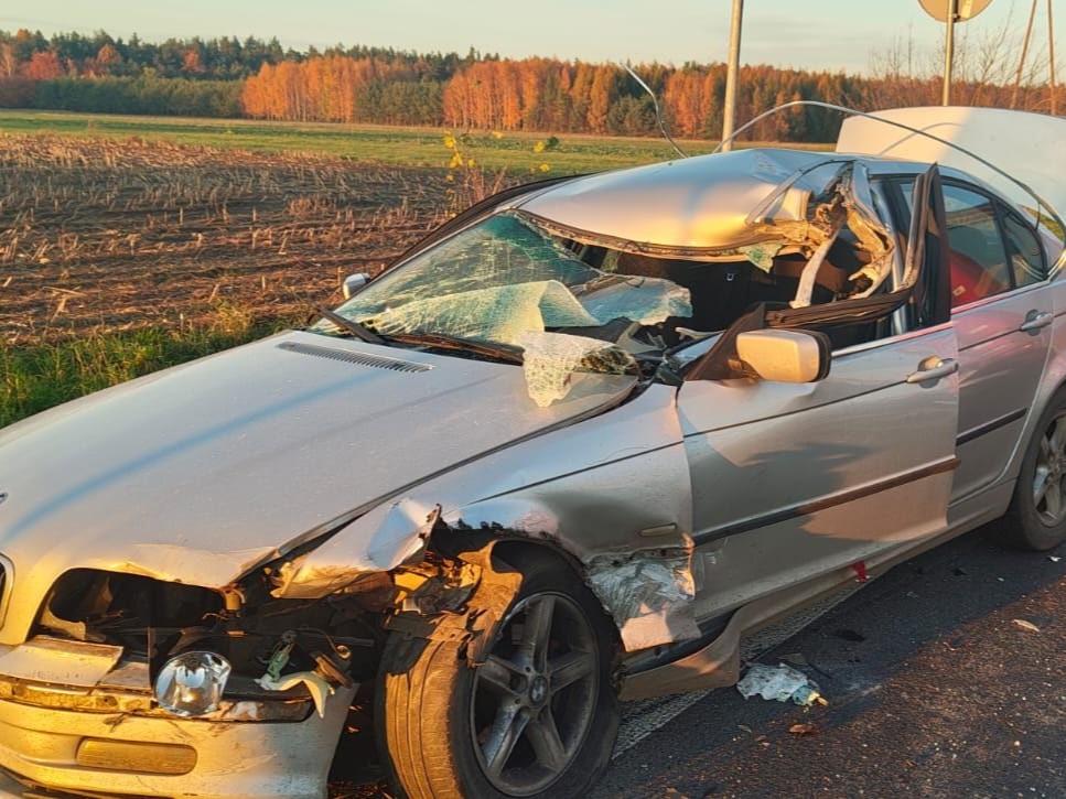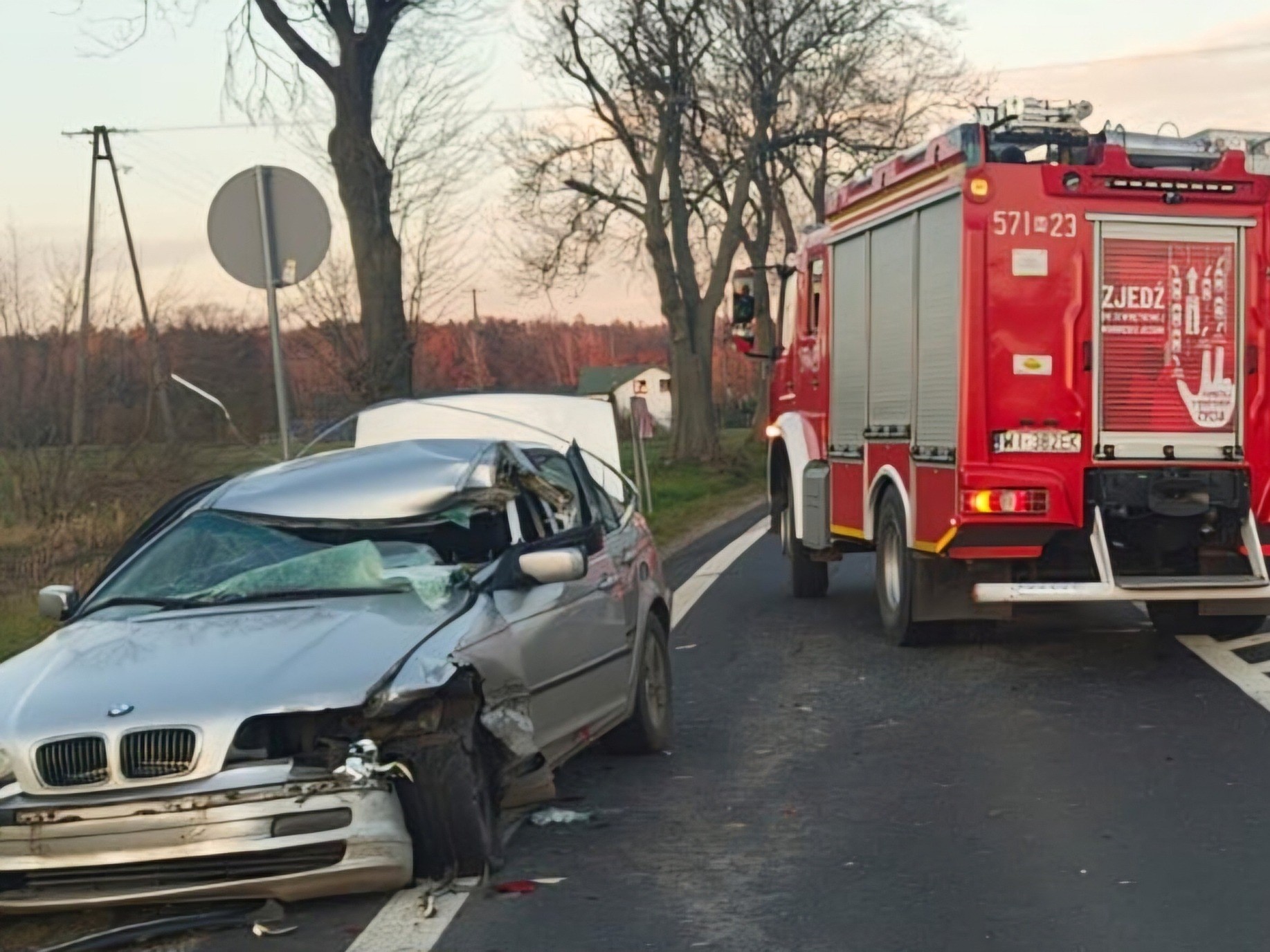 Doszło do zderzenia obu pojazdów. Siła uderzenia była na tyle duża, że osobowe BMW zostało poważnie uszkodzone.