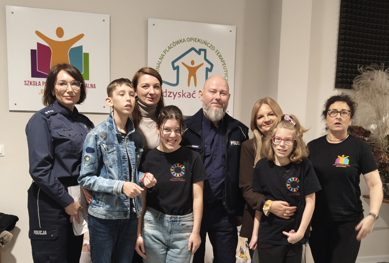 Płońscy funkcjonariusze od lat wspierają inicjatywy Fundacji "Odzyskać Radość", działającej na rzecz małych pacjentów z kraszewskiego Zakładu. Tego dnia Komendę reprezentowali nadkomisarz Kinga Drężek-Zmysłowska oraz aspirant sztabowy Artur Zdrojewski, znany w Kraszewie jako "wujek Artur".