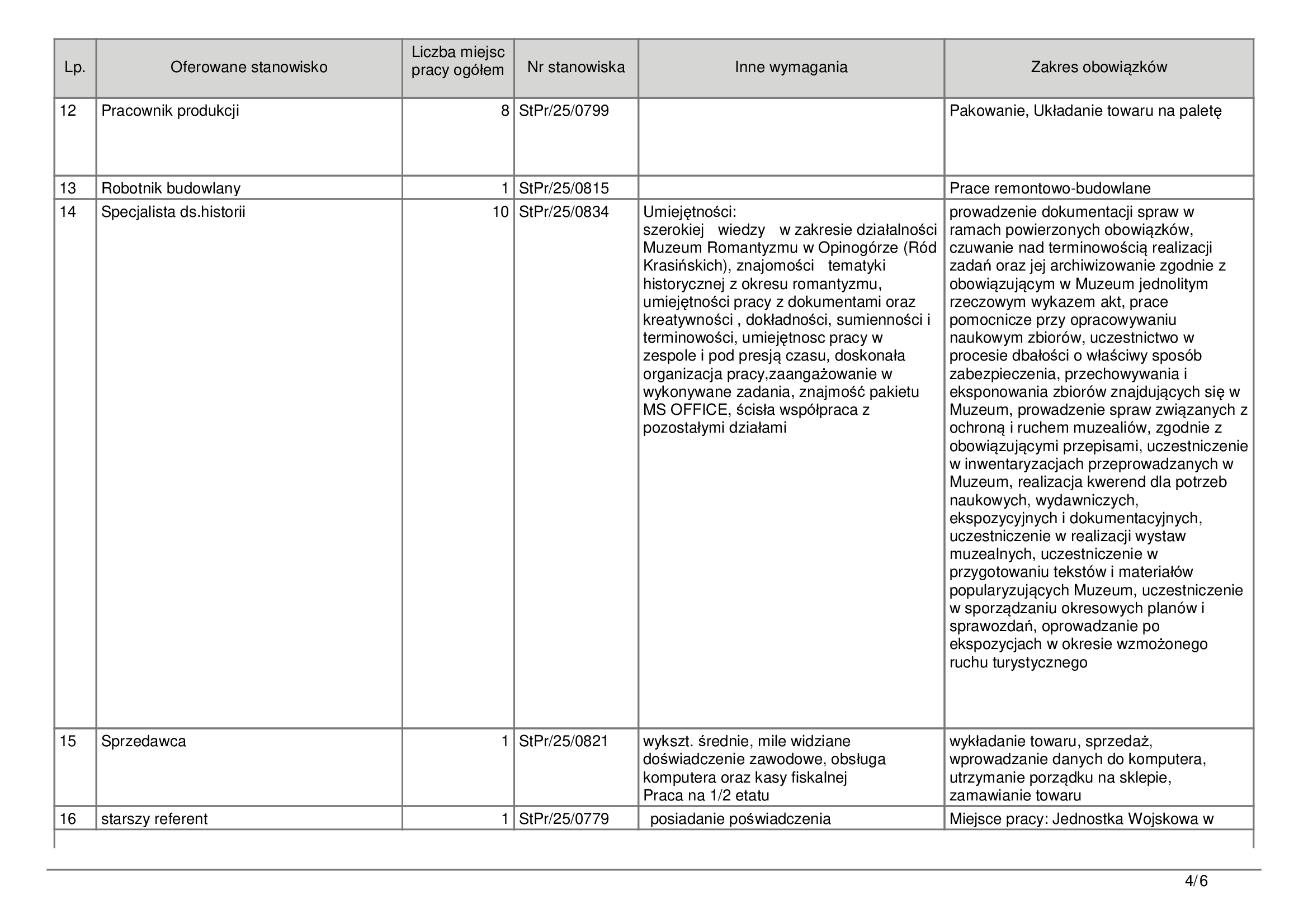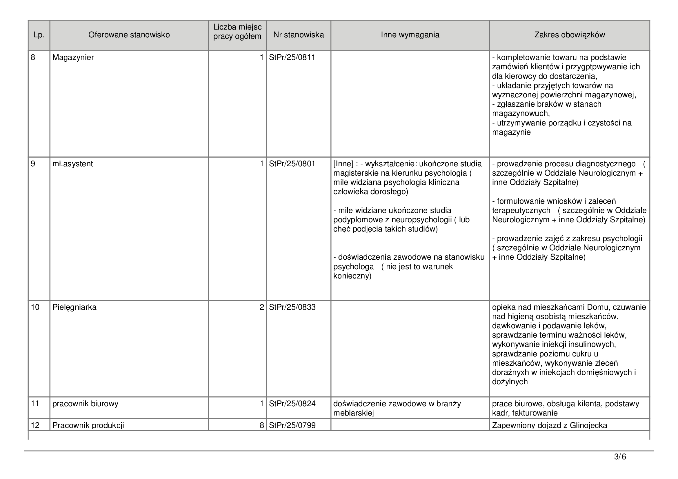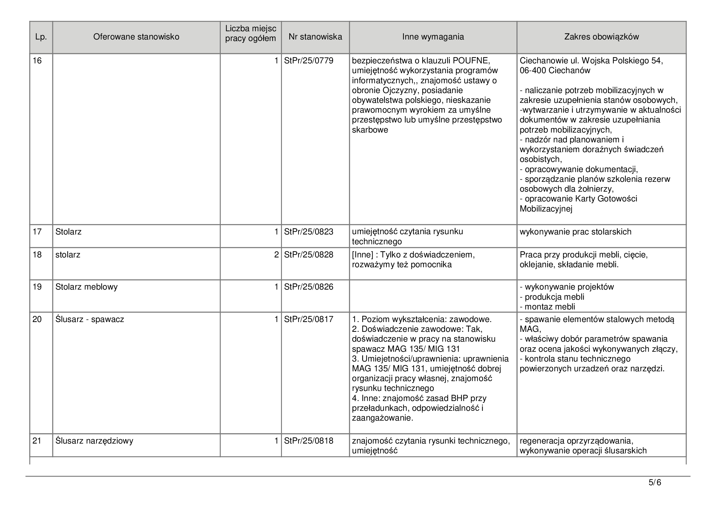 Wszystkie szczegółowe informacje dotyczące wymagań oraz zakresu obowiązków dla poszczególnych stanowisk dostępne są w Powiatowym Urzędzie Pracy w Ciechanowie. Pracodawcy oczekują osób z zaangażowaniem, dobrą organizacją pracy i, w wielu przypadkach, gotowością do pracy w zespole.