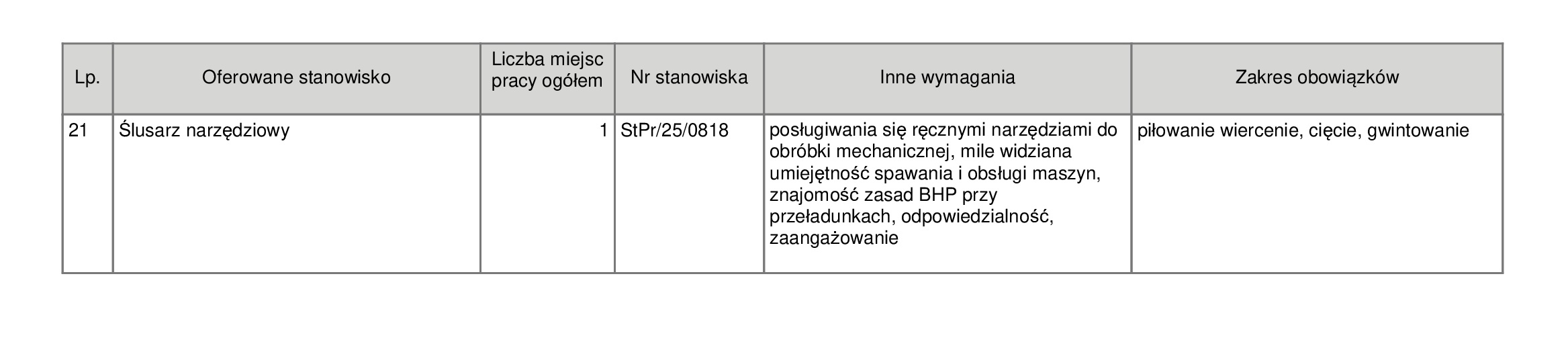 Ślusarze narzędziowi oraz Ślusarze-spawacze (łącznie 2 miejsca) muszą wykazać się umiejętnością czytania rysunku technicznego, a w przypadku spawacza – uprawnieniami MAG 135/MIG 131.