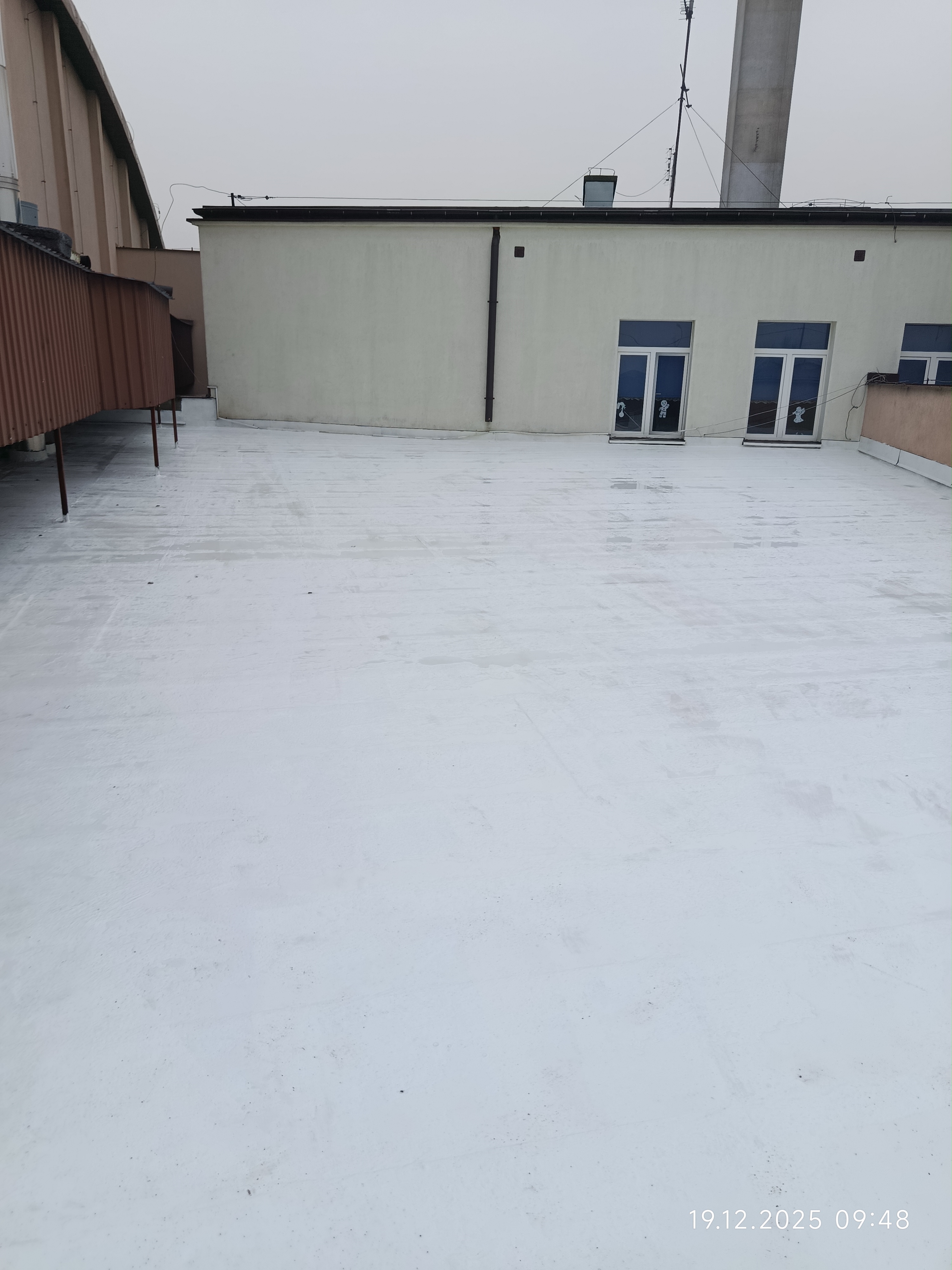 Na dachu pokrytym papą zastosowano zaawansowany układ warstw. Pierwszym krokiem było położenie półelastycznego gruntu poliuretanowego o głębokiej penetracji. Następnie wykonawca nałożył dwie warstwy bitumiczno-poliuretanowe, które uszczelniły nawet najmniejsze szczeliny, tworząc bezszwową izolację. Całość zamknęła warstwa nawierzchniowa na bazie hydrofobowych żywic poliuretanowych.