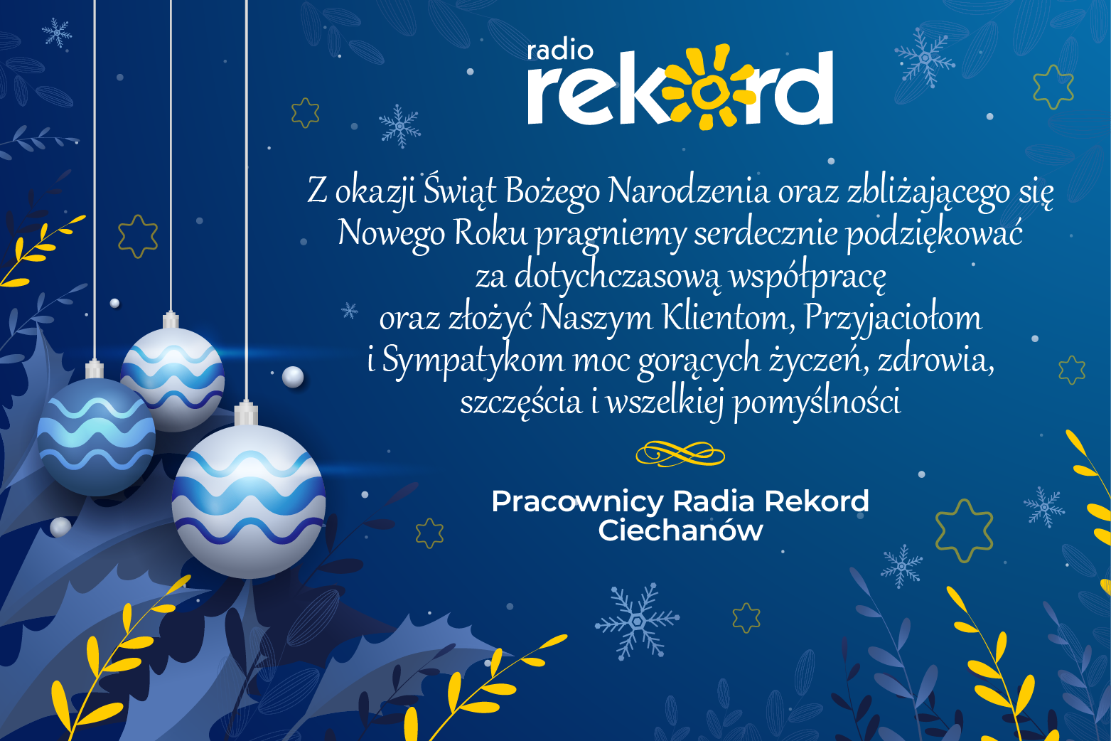 Nadszedł czas, w którym codzienne wiadomości, pośpiech i lokalne problemy ustępują miejsca tradycji oraz chwilom spędzonym w gronie najbliższych. Z okazji Świąt Bożego Narodzenia, zespół redakcyjny portalu ciechanow.cozadzien.pl oraz dziennikarze Radia Rekord Mazowsze przygotowali dla Państwa specjalne przesłanie.