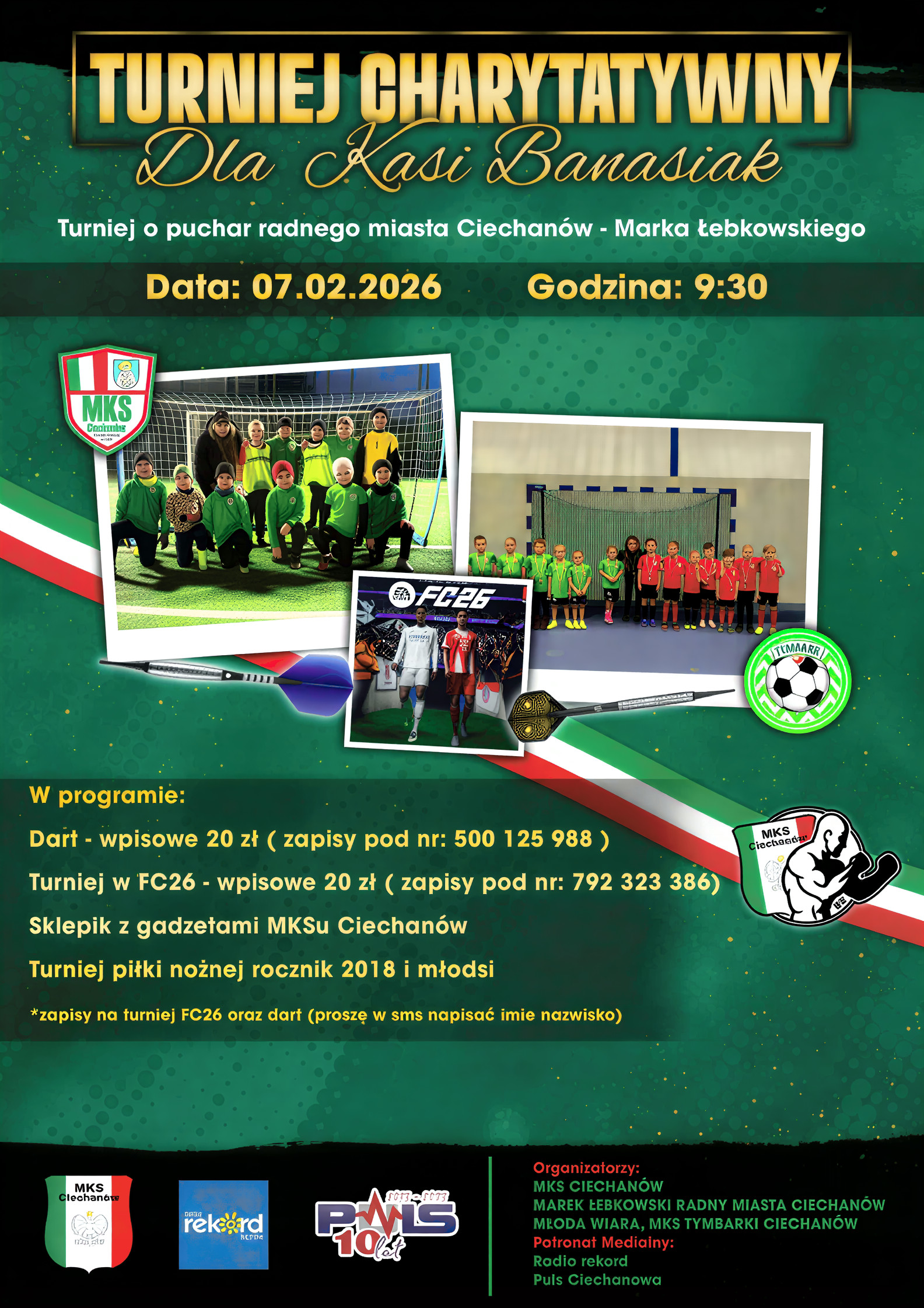 Dla fanów precyzji grupa Dart Ciechanów przygotowała turniej, do którego można zapisać się pod numerem 500 125 988. Z kolei miłośnicy wirtualnych boisk zmierzą się w turnieju FC26. Tutaj zgłoszenia przyjmowane są pod numerem 792 323 386. Przy zapisach SMS należy podać imię i nazwisko uczestnika.