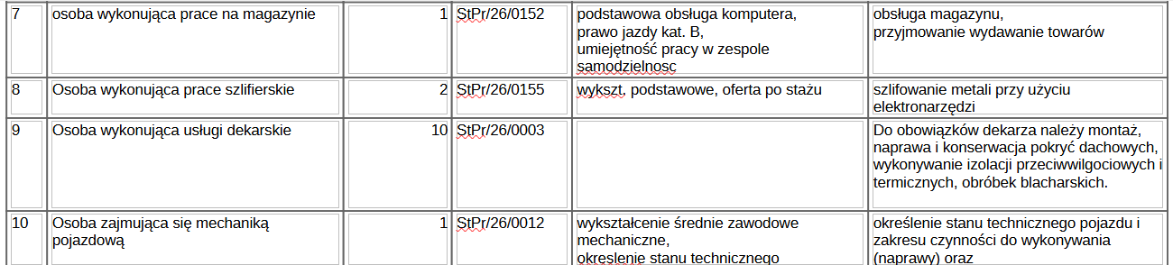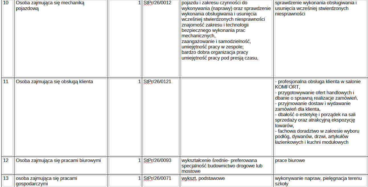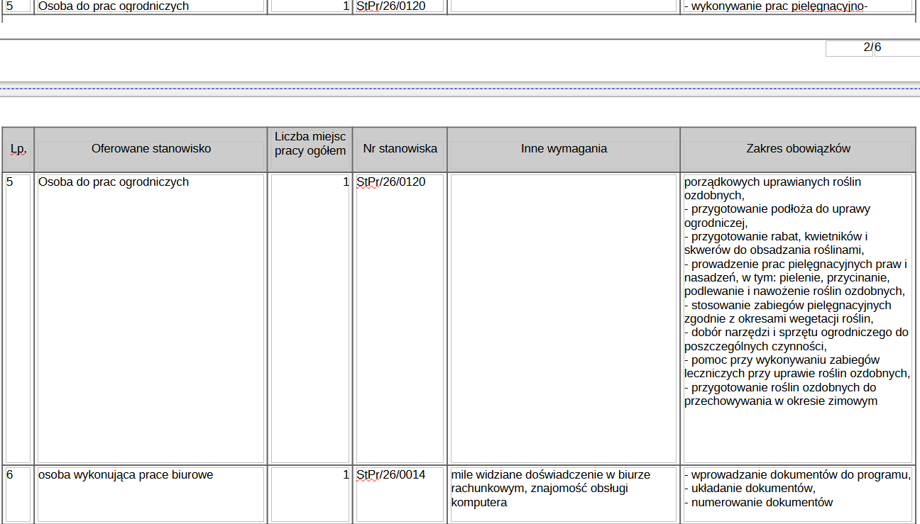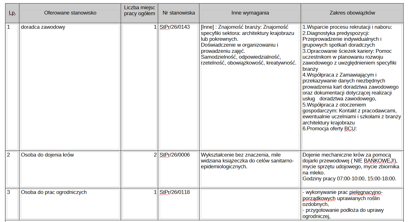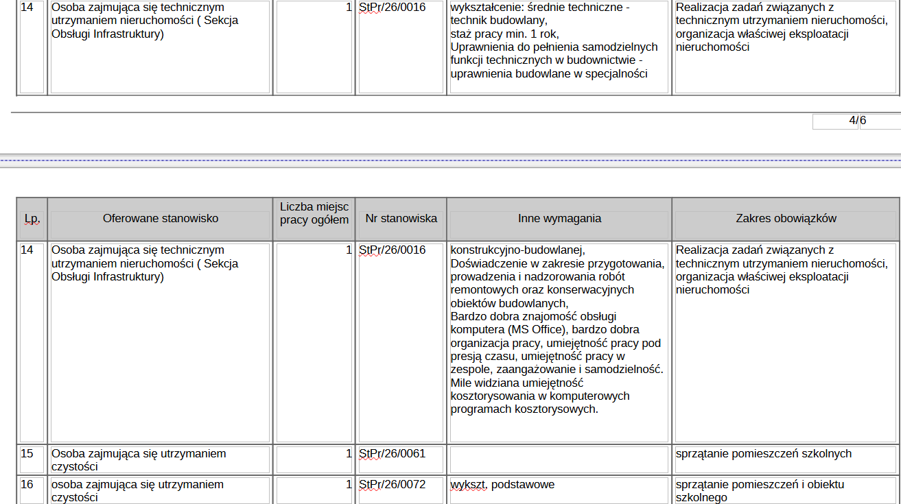 Poniżej przedstawiamy tabele ze szczegółowym opisem stanowisk, na które poszukiwani są przcownicy