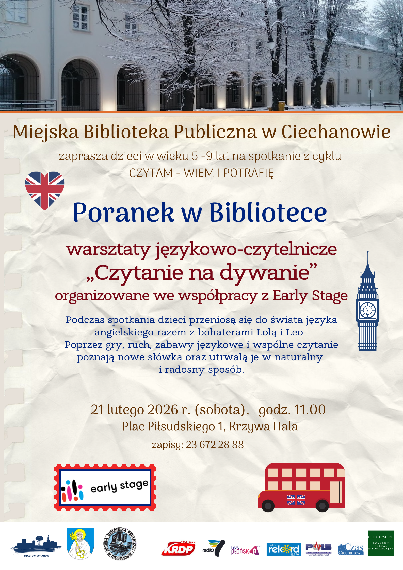 "Poranek w Bibliotece to warsztaty językowo-czytelnicze organizowane we współpracy z Early Stage, które stawiają na radosny rozwój kompetencji językowych u najmłodszych" - dodaje dyrektor biblioteki.