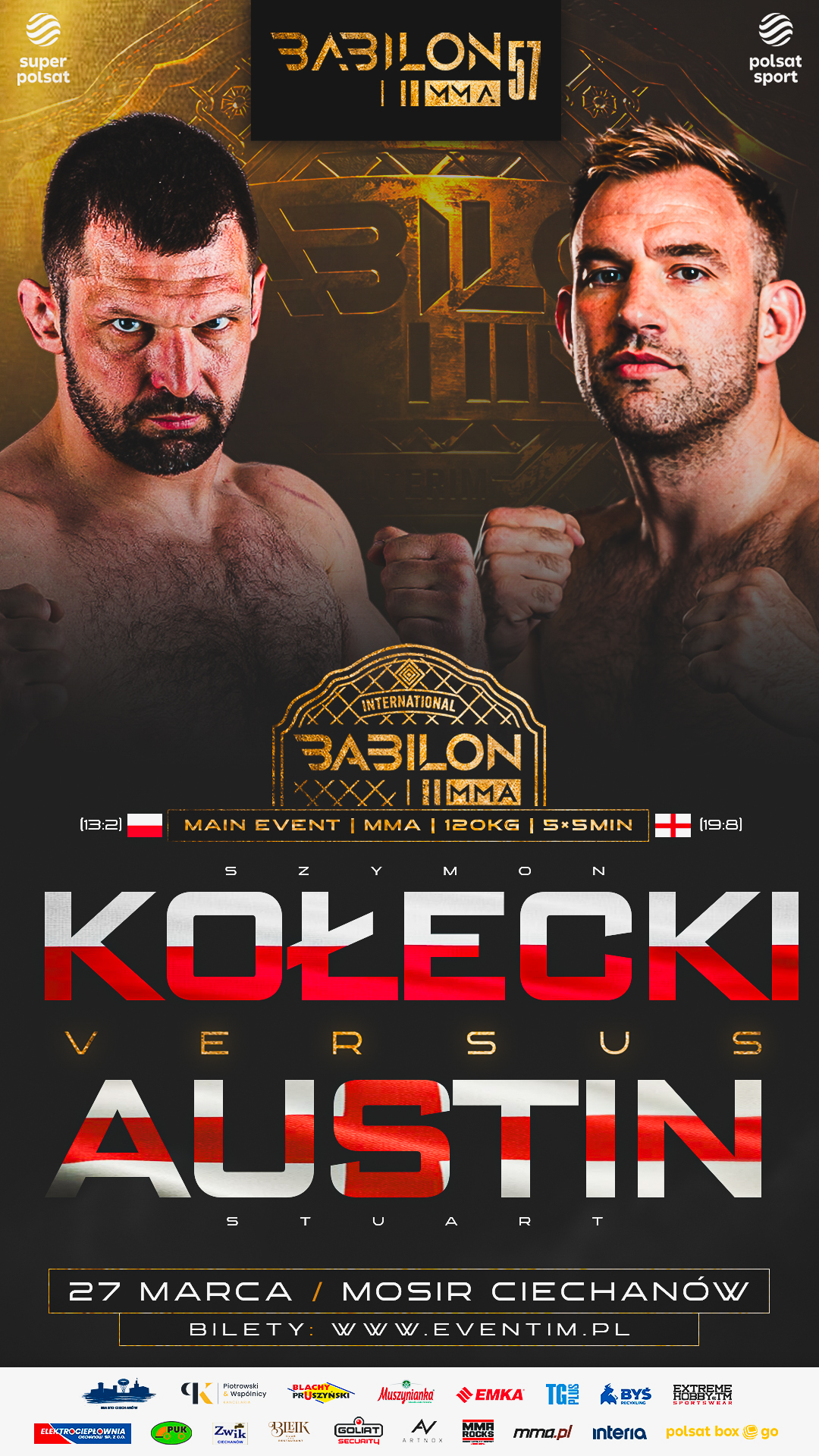 Hala MOSiR w Ciechanowie ponownie stanie się centrum polskiego MMA. Dla Szymona Kołeckiego występ przed własną publicznością ma szczególne znaczenie. Polak celuje w drugą koronę organizacji Babilon, jednak poprzeczka została zawieszona najwyżej z możliwych. Na drodze 44-letniego reprezentanta gospodarzy stanie Stuart Austin, zawodnik z ogromnym bagażem doświadczeń wyniesionym z takich organizacji jak Bellator, PFL czy OKTAGON MMA.