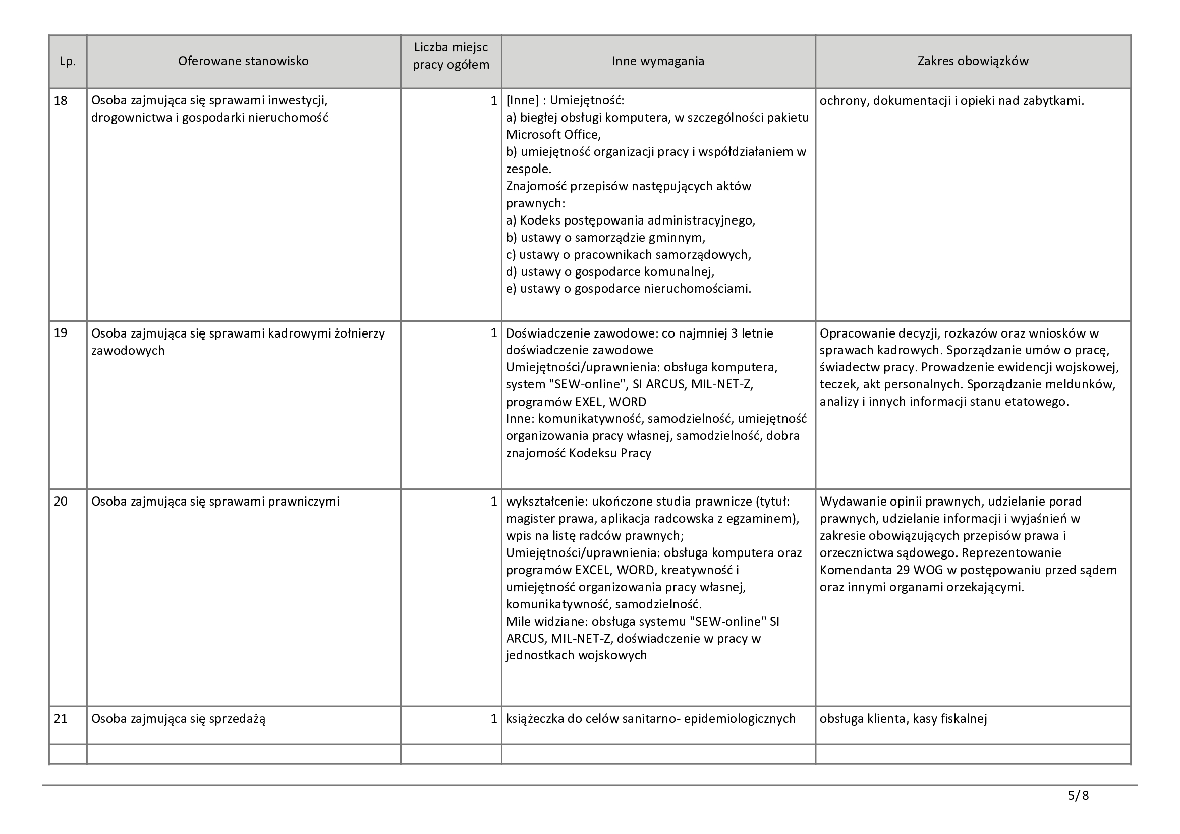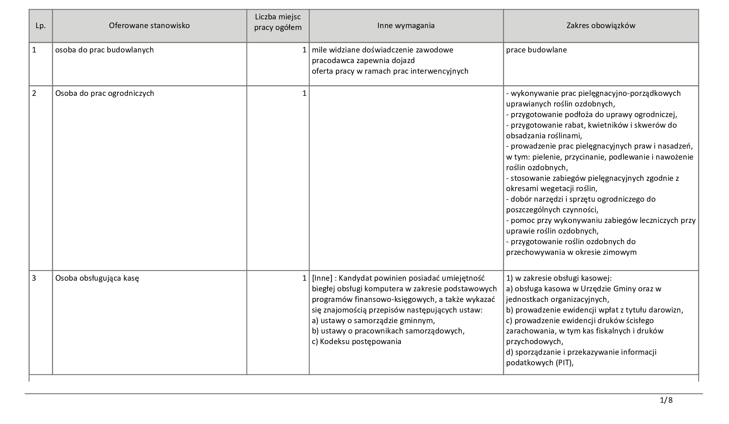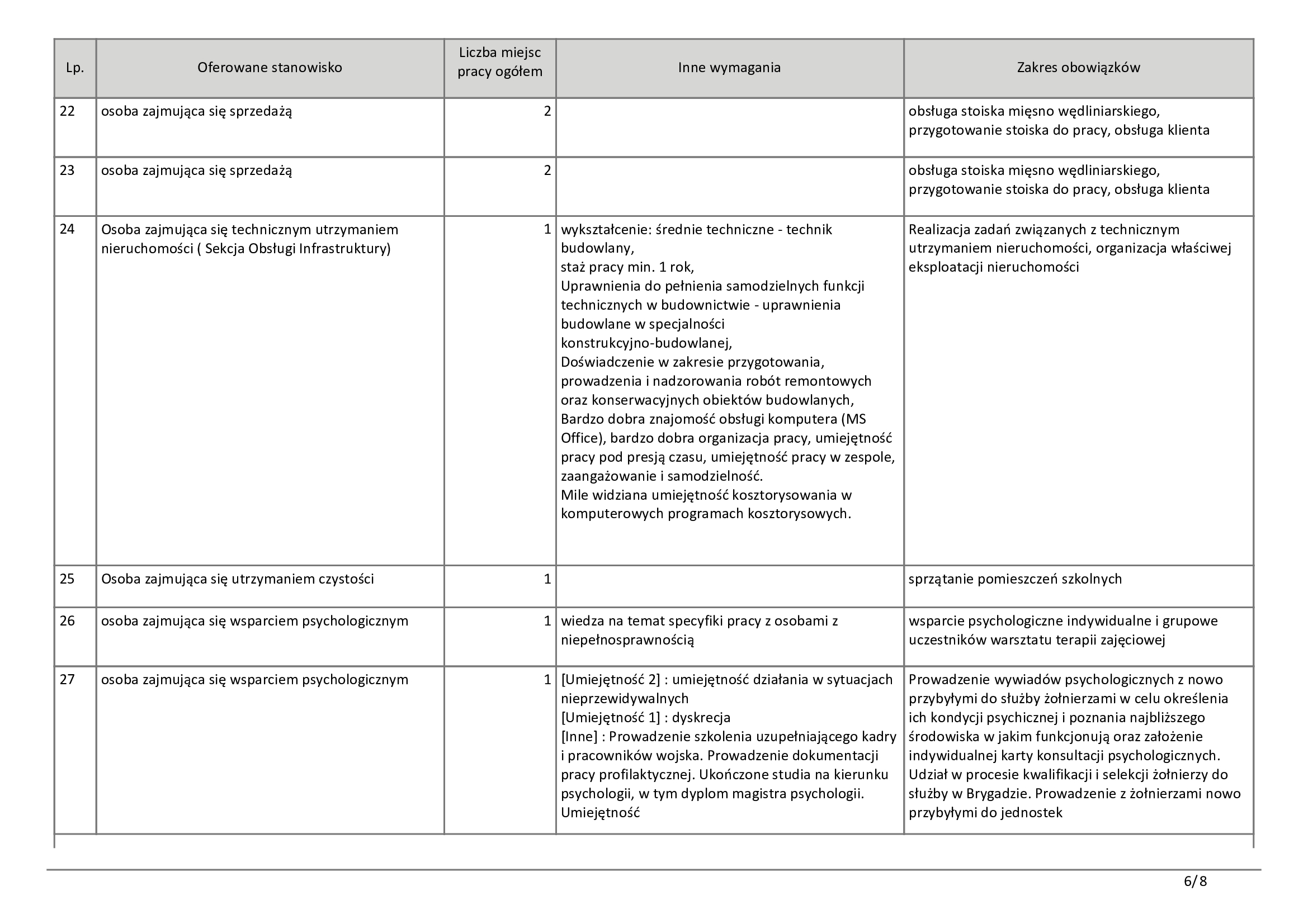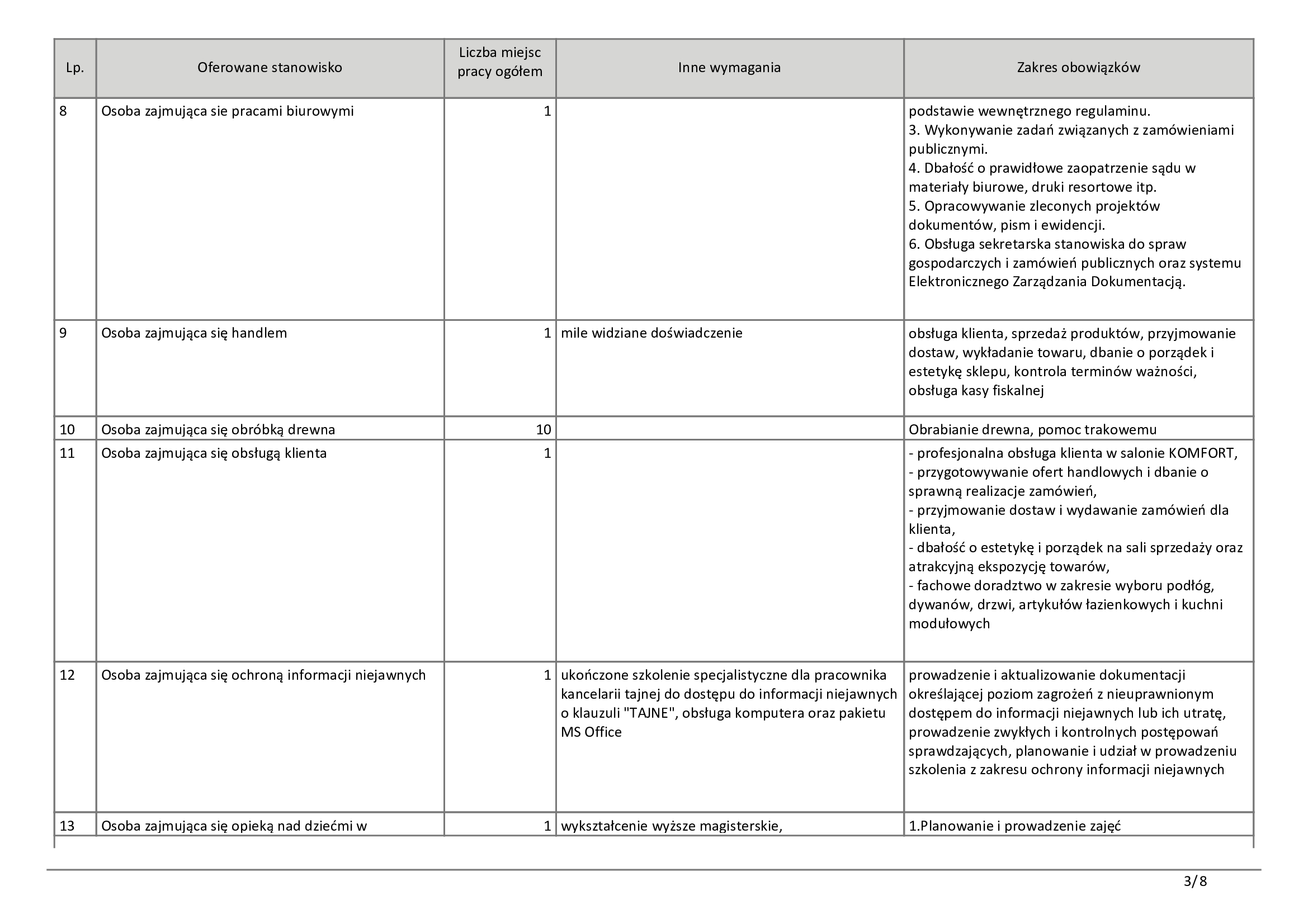 Dla osób bez specjalistycznego wykształcenia przygotowano propozycje pracy w handlu oraz usługach. Wolne miejsca czekają na sprzedawców, kasjerów, a także pracowników do wykładania towaru. Pojawiły się również ogłoszenia dla sprzątaczek, portierów oraz pracowników gospodarczych.