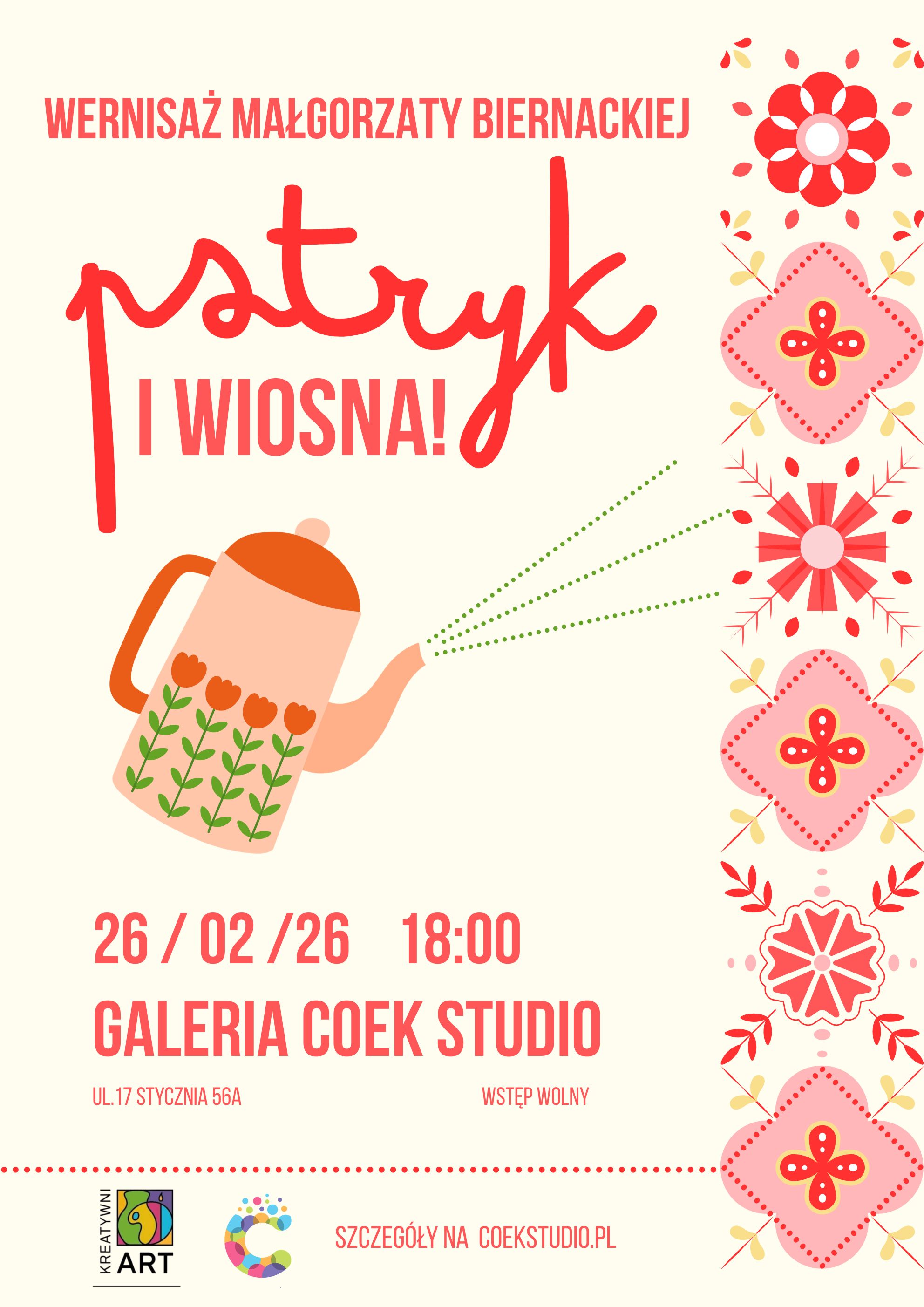 Wystawa "Pstryk i wiosna!" przynosi prace pełne barwy i energii. Ich wspólny mianownik? Wiosenny nastrój i przekonanie, że piękno nie ma jednej definicji. Biernacka chętnie powołuje się na motto swojego ojca: "Nie to ładne co ładne, tylko to ładne co się komu podoba."
