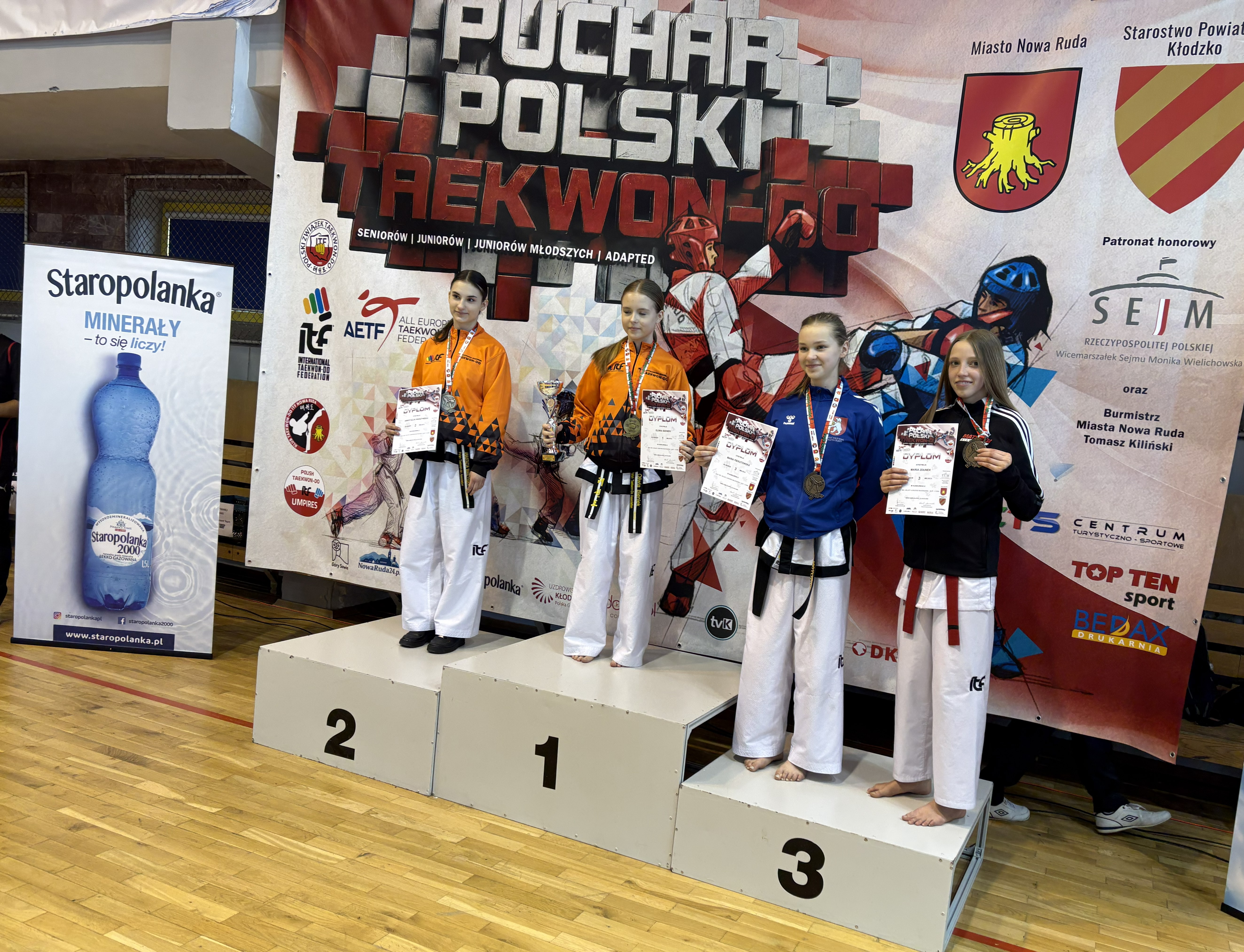 Wśród dziewcząt z medalami do domu wróciły trzy zawodniczki. Maria Zdunek dwukrotnie stawała na najniższym stopniu podium, zajmując trzecie miejsce w walce do 44 kg oraz w układach formalnych stopni 1 gup - I dan. Bardzo dobre występy zanotowały także kolejne reprezentantki Matsogi. Natalia Kaźmierczak wywalczyła brąz w kategorii do 48 kg, wygrywając dwie walki. Z kolei Julia Martela po pokonaniu dwóch przeciwniczek przegrała dopiero w półfinale, ostatecznie zdobywając brązowy medal.