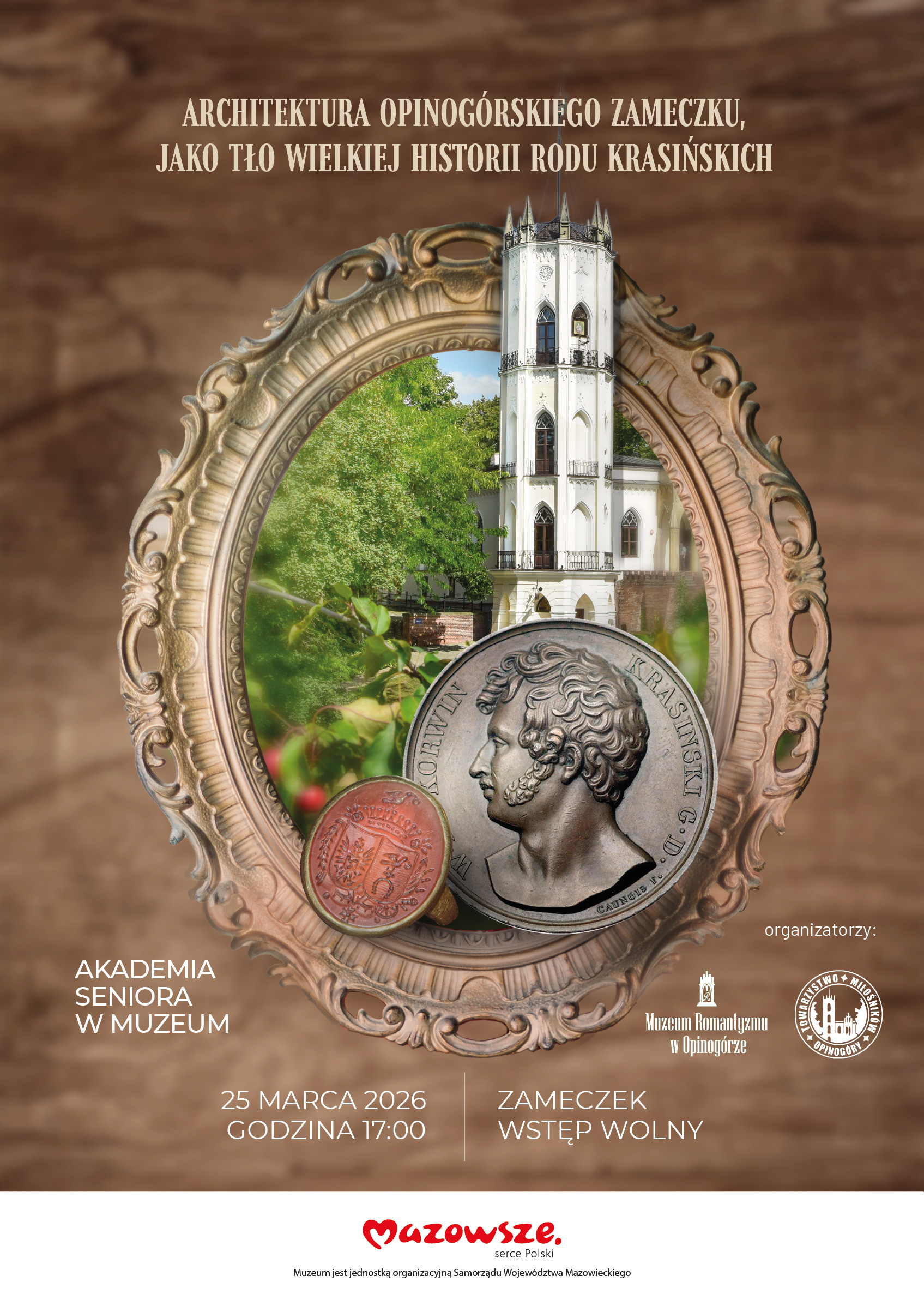 Wydarzenie jest organizowane we współpracy z Towarzystwem Miłośników Opinogóry. Spotkanie rozpocznie się o godzinie 17:00 w samym Zameczku. Organizatorzy podkreślają, że wstęp na prelekcję jest bezpłatny, co sprzyja integracji lokalnej społeczności wokół wspólnego dziedzictwa.
