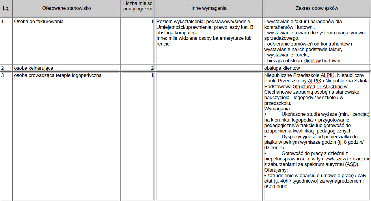 Najnowsze oferty pracy w PUP Ciechanów
