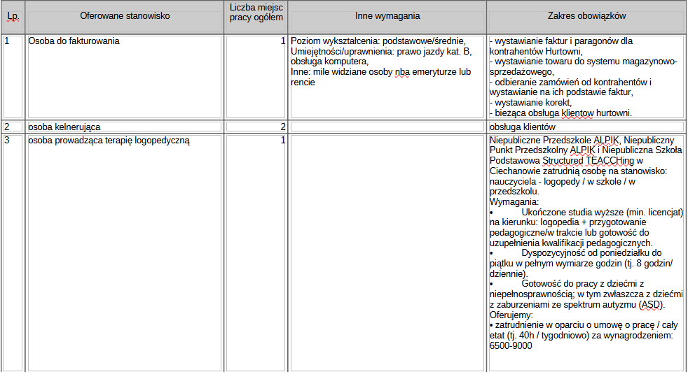 Poniżej najnowsze oferty pracy dostępne w Powiatowym Urzędzie Pracy w Ciechanowie.