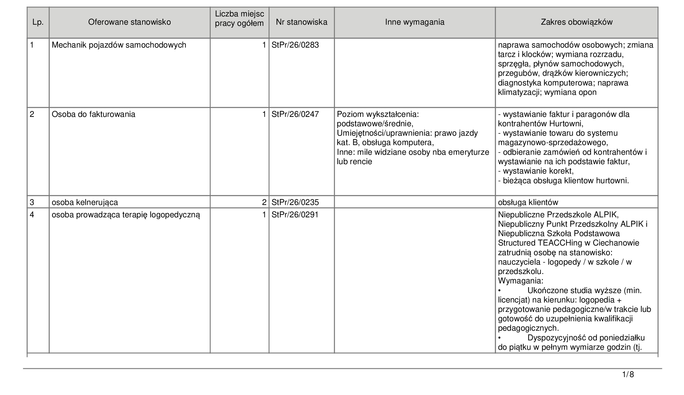 Wiosenne ożywienie na lokalnym rynku pracy przekłada się na konkretne ogłoszenia. W najnowszym spisie dominują oferty z sektora usług i administracji. Firmy w Ciechanowie i pobliskich miejscowościach, takich jak Opinogóra Górna czy Regimin, potrzebują rąk do pracy niemal natychmiast.