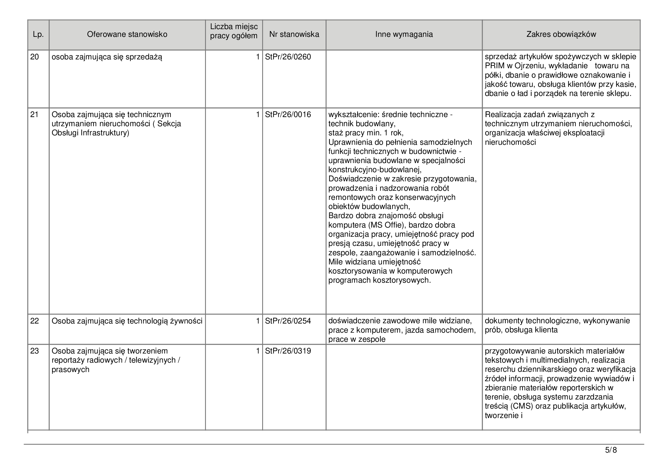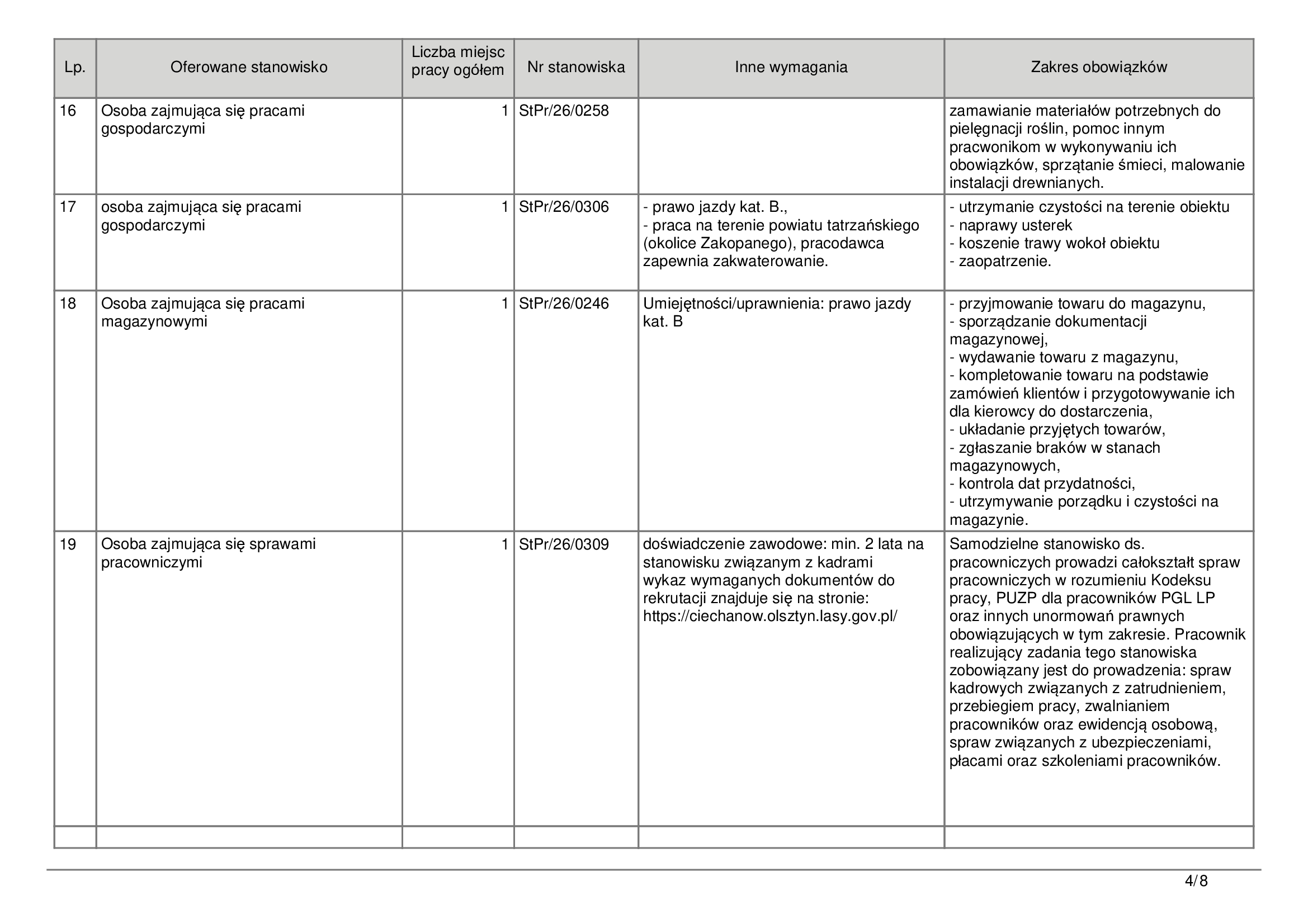 Dla osób szukających zatrudnienia w handlu dostępne są miejsca dla sprzedawców-kasjerów. Potrzebni są również pracownicy do utrzymania czystości oraz pomocnicy przy produkcji roślinnej w Opinogórze Górnej. Warto zwrócić uwagę, że część ofert skierowana jest do osób z konkretnymi uprawnieniami, np. do obsługi wózków widłowych.