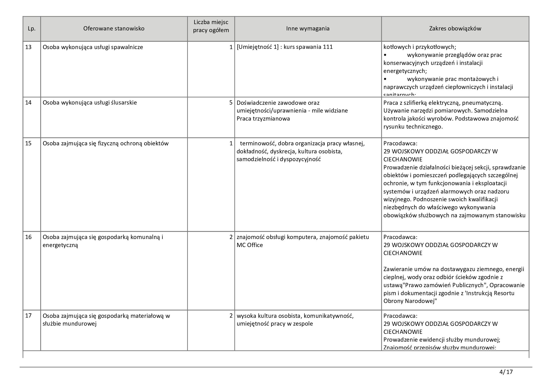 Wśród najnowszych ogłoszeń wyróżnia się zapotrzebowanie na osoby z konkretnym fachem w ręku. Firmy produkcyjne i usługowe z Ciechanowa szukają m.in. ślusarzy, spawaczy oraz operatorów maszyn CNC. W wielu przypadkach pracodawcy deklarują chęć przyuczenia, o ile kandydat wykazuje chęci do nauki i sumienność.