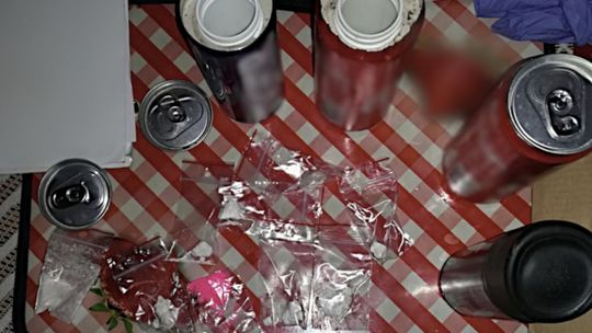 Funkcjonariusze zabezpieczyli narkotyki, maczetę, kastet, pałki czy zagłuszarki, odkryli także specjalnie przygotowane puszki po napojach, a w nich ukryte narkotyki.