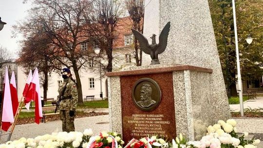 Przedstawiciele Starostwa Powiatowego w Ciechanowie złożyli wczoraj kwiaty przy pomniku marszałka przed Krzywą Halą i pod pomnikiem Wincentego Witosa.