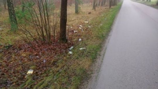Powiatowy Zarząd Dróg w Ciechanowie zebrał około 0,5 t śmieci w tym plastik, szkło i gabaryty.