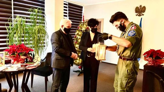 Wczoraj Betlejemskie Światełko dotarło też do Starostwa Powiatowego. Z rąk harcerzy odebrali je Starosta Ciechanowski Joanna Potocka-Rak i Wicestarosta Stanisław Kęsik.