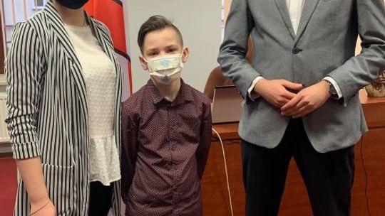 Bartek Jędrzejewski razem z mamą został zaproszony do siedziby władz Przasnysza przy okazji zwieńczenia akcji w którą zaangażowanych było wielu mieszkańców miasta oraz organizacji.